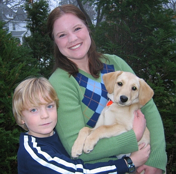 Abby continues to do well. She is smaller than the boys. She weighed 19 pounds at 13 weeks. Our vet is estimating (guesstimating?) she'll be around 55 pounds full grown. Abby does well with her basic commands--sit, stay, lay down and come. She does not do well, unfortunately, with staying "off" and "no biting." My hands look like they've been down a garbage disposal. Hopefully with time that will end. Abby and the cat continue to duke it out. Kitty has established herself as the alpha pet and eggs Abby on so we're not sure who to yell at.