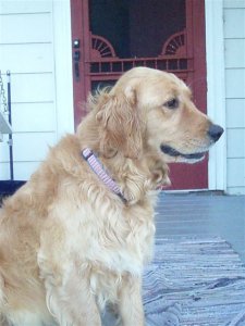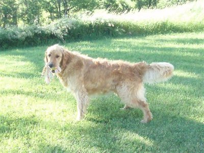 It was the warmest day of the year when we drove up to the rural log home to meet Andy, he was on the porch in all his golden glory and greeted us with a waggy tail and smile. I could see from down the long driveway that he would be the perfect Ragom boy. Andy, 3.5 years old, came to Ragom from a family who had him since he was a puppy. They bought him from a pet store and he stayed an outside dog. They reported that his favorite place to sleep was on the gravel road. They said that he loved to be around kids and was fond of balls.