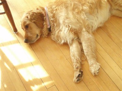 This beautiful guy has the sweetest disposition of any foster I’ve ever met (sorry Toby Ed). Even though he probably didn’t feel very well, he was gentle and kind and extended a loving paw when ever he felt like getting a pat. I adore him already. He doesn’t bark, he doesn’t beg, and he doesn’t run away when he goes outside (my favorite attributes). He has light golden fur with