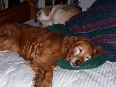 Angel has now taken on her new role as Lead Foster Dog, and is doing very well showing our new Bailey 06-436 the ropes this evening; the two have been inseparable. I must say she's is doing a darned good job; Libby is pretending that nothing is going on and minding her own business as usual.
