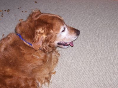 It's been two weeks since my last update on Angel?!? Wow, time flies when you're having fun :) Angel has been a wonderful and easy addition to my household. This morning, I went out to have breakfast with my folks and brought the dogs for a car-ride since it was such a lovely day. I was amazingly ten minutes early, so let the dogs out for a walk around a baseball field - when Angel spied a pond! She is such a water dog, so made a beeline right for the pond and leapt in, and Libby the Yellow Lab actually followed her lead and jumped in as well. We all returned to my car, the dogs happy and refreshed - and DIRTY! :) Good thing I have leather interior...and my Dad thinks my car "...needs a hair cut."