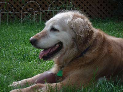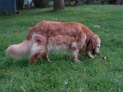 Angel spent the first eight years of her life living in an outdoor kennel and having puppies. She's now starting to enjoy her golden years and loves to be pampered! Angel made one more trip to the vet this week. He cleaned her teeth and ears so now she has a bright smile to go with her beautiful face! He also checked the sore spots on her legs and noted that they are healing nicely. The fur is growing back everywhere except over the old scar on her left foreleg.
