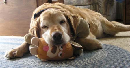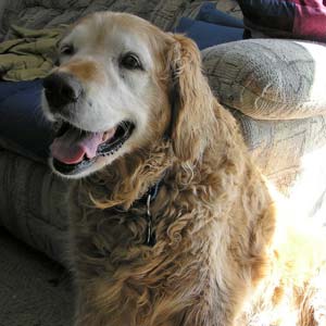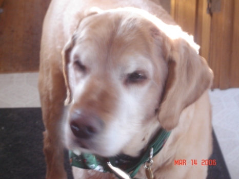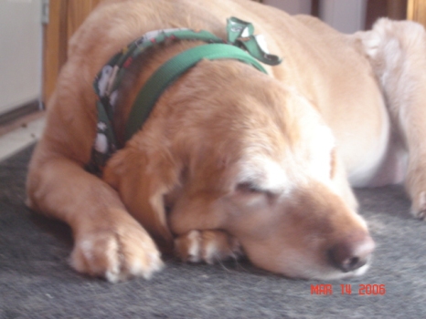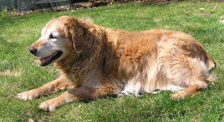 | I'm writing you to say that our sweet Golden girl, Anna 06-097, on January 14, 2009 went to the Rainbow Bridge. I've started to write this many times and have had to stop. The snow is gently falling and Anna loved to go out in the snow and lay down on a pillow of snow and get covered with a soft white blanket of snow. I know that so many of the tributes are so wonderful to read. I want to thank Ragom for all our dogs, but I also wonder if the people that gave Anna up or the foster family wonder how she did? To the family that gave her up I know you deeply loved your dogs. Anna came with two of each toy so I know you gave your love in 2's. We added so many toys and she would take her pick out of a basket. She was very well trained and so gentle. Thank you for such a sweetie. To the foster family after losing Amber I can see why you might have wanted to keep her. Thank you.