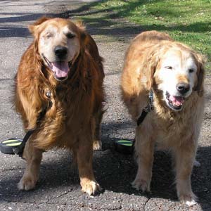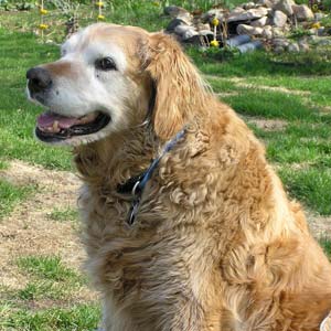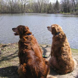 Anna came and was alpha dog and Mason loved to have her here. I'd find those two by each other's side most of the time. Anna loved to be on our deck. She would make sure no squirrels touched the ground. We have a wooded area which is patrolled regularly and Anna would run off the deck to bark and let them know that she was watching. I think it was fun for the patrol to see if they could get by either driving very slowly so as not to make noise, or go by quickly to see if she could get to the fence before they passed our property line. In any event the guards this last year would stop to greet her. They even stopped to say they missed her not greeting them. Anna had it easy here as I was home and could let her in and out whenever she wanted. Mason, Anna and I would take daily walks to the park to look for squirrels or ducks . It was very common around 3:00 for the dogs to Woo-Woo as if to say let's go. We had all of Anna's warts removed and let her hair grow. She was like a woolly sheep and she loved to be brushed and I would gently rub her neck. This last year she had developed diabetes and lost her sight but you would not know it around the house and yard. She became very close to me as I was her seeing eye human. She had gone to the park so many times that she knew the route and I really didn't guide her as much as tell her when something was in her path. She had made it a habit to go to a point where the ducks would come out of the water. We continued doing this and there on the bank of the pond we would sit and rest. I call the point Anna's Point and think of her when I walk Mason #02-329 and Molly (aka Bridget) #08-329 and we stop at the point. Anna was our golden girl and we will remember the good times we shared.