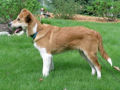 Well, I'll tell you a little about me. I am kinda shy around...well...most everybody right now. However, a little sweet talkin' and a warm hand to lick is just about all it takes to let me know you're my bud. My canine foster sis, Molly, is showing me how to get attention - she's REALLY good at it! I've been getting the tail-wag routine down quite well - just to let my people know I really do love being here. The rest of my body is slowly catching on to that wagging part too. I'm certain that my tail will wag the body, just like Molly's, in a very short time!