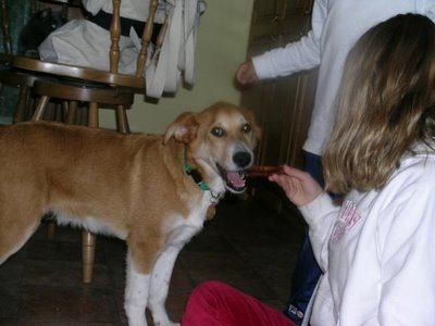 I am spending my first night in my crate in the 10 year old person's room - she's really cool! I like playing with the kids in this house! They find all the fun toys for me, give me lots of hugs and even let me kiss them once in awhile! I think people kids are pretty fun!