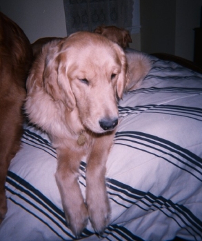 While at the Univ. of Mn for Arthur's checkup before his surgery we did get some good news for him. They took another set of x-rays of Arthur's hips and decided that Arthur is not going to need surgery on his left hip. Arthur does have some hip dsyplasia in that hip but the Doctor said it was not severe enough to warrant hip surgery. At this time there is no arthritis and no wear spots in the left hip like there was in the right hip. Dr. Kramek did say he will end up eventually getting some arthritis in that hip and only time will tell how severe it will get. It is recommended that Arthur would not make a good agility or running dog because of this hip, but he shouldn't have to be curtailed from any of the activities that a normal dog does, like chasing balls, running after a canine brother, swimming or taking long walks. It is recommended that Arthur be on Glousamine for the rest of his life, Glousamine helps in keeping joints strong. Right now is costs me less than 13 cents a day for Arthur's Glousamine.