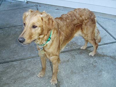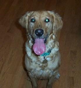 Gee, I do have to admit, Autumn is not the easiest dog in the world to get pictures of. I'd do better with a videocam. When outside and running, she is so beautiful to watch, but entirely impossible to catch on camera. She really would be an excellent dog for agility. She's fast, straight-bodied, treat-motivated and a very smart girl that would have so much fun running through the course with you. She does have AKC papers (since she's been in rescue, you'd have to get her certified, but that would be very easy to do,) is a purebred Golden and could easily compete in agility. And I have to believe she would be an excellent contender with high chances of doing very well with the right training. When I ask her to sit, she sits, but when I move backwards to get her in the picture, she comes forward with me which doesn't make for a very attractive picture as all I get is the inside of her nose. I guess we'll have to work a little on a "stay" or "wait" command, or you could if you are the lucky home that decides to adopt her.