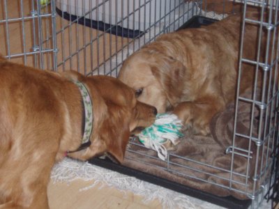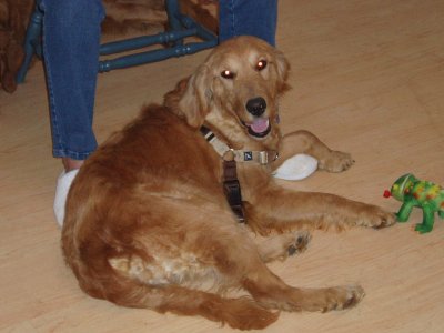 Hi everybody Autumn here. Last night Mom and Dad brought home another golden! Can you believe it? I have another playmate. She is also from a puppy mill and RAGOM told me it is my job to help her come out of her shell. WOW! Can you believe I am important enough now to have a job! I never had anyone until RAGOM. I love RAGOM! I am treated really special now in my new life. My new foster sister’s name is Lily (02-260). I gave her some kisses and brought her a toy last night. She liked that. She also likes my other sister Sierra and my brother Stetson. Well more about ME now since this is MY update.