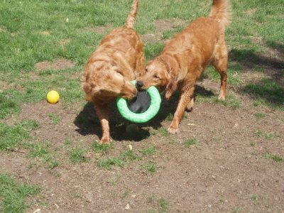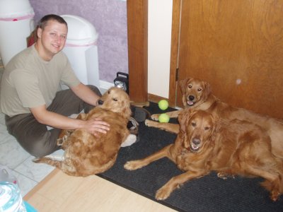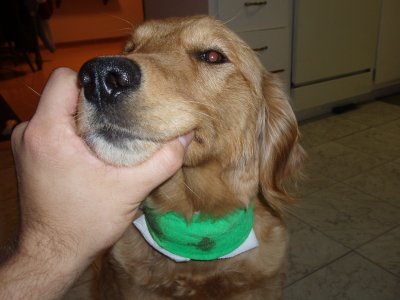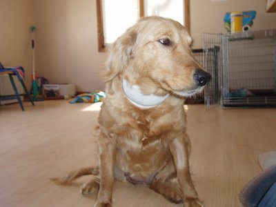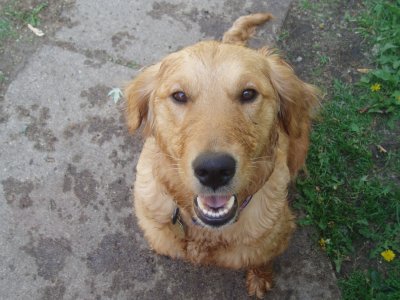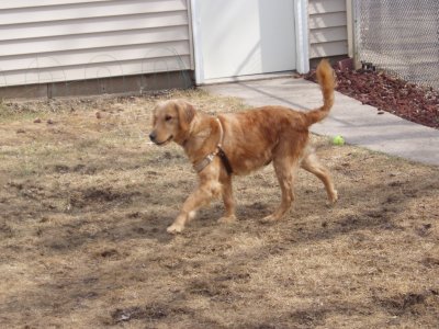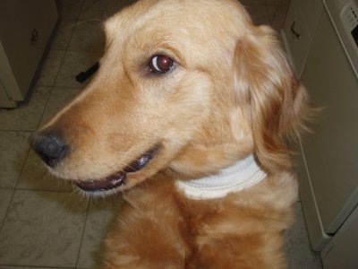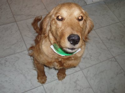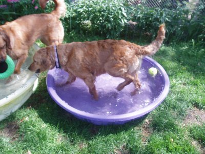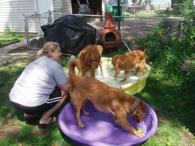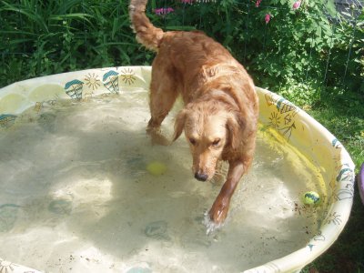 I love my new home, my Mom and Dad, and Sierra and Stetson. I'm so happy I didn't have to leave! For all you RAGOM volunteers come see me tomorrow at the volunteer picnic. I got a big girl collar and my neck is healed enough to wear it! I was hoping to show it off. (It's from my grandma! Sometimes she even sends my brother and sister and I stuff from Dr. Foster and Smith! WOW!) You can finally meet me and pet my shiny, healthy coat now too! I hope some of my ND PM brothers and sisters are there. I will also be at the RAGOM picnic in September for everyone if anyone else wants to meet me. Thanks to volunteer Christi T. for my new dog pool. I LOVE water and went in it today for the first time. I even stuck my whole head in the water. Then my sister Sierra dug a big hole and we rolled in it and got all muddy. Dad was putting on a new back door so he didn't even notice until it was too late, ha ha :) Then we had to get baths so tomorrow I will be pretty for the picnic. Baths aren't bad though because after bathtime we all get frosty paws dog ice cream! YUM. Thanks everyone for helping me on my journey from ND to MN and into my golden life. I couldn't have done it without RAGOM.