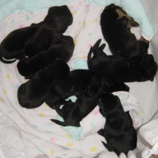 Our little Labor Day puppies are now 4-1/2 weeks old and adorable little furballs. They are starting to play with each other, but their favorite thing to do is to climb all over you. Thereâs nothing quite like sitting on the floor and having 9 puppies crawl all over you! You have to smile and giggle and love every minute of it.