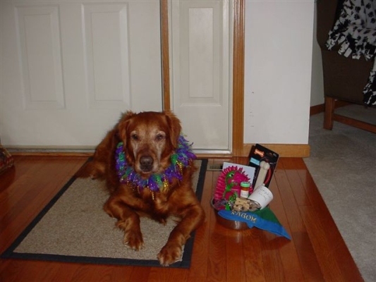 La la la...Met a family...La la la...They want ME!!!!! No time to think of a rhyme cuz I gotta pack! Mrs. Brown has a forever home! I'm gonna be showered with love by all my new humans and go for three walks a day and hang out with my mostly-work-at-home-dad and bug...I mean bond with the cat. Yea for me!! (Too bad for the cat.) We had a party last night and we all had Frosty Paws! Foster Mom gave me a pep talk and told me to be good and make her proud. She said she'll ALWAYS love me. My canine foster sisters told me not to let the door...well, you know. They don't mean it though. They're just mad cuz I'm taking the new nylabone and half the Golden Dog Bakery treats from the Pet Expo. I just know I'm gonna be the most missed foster dog in the history of the planet! Bailey Brown! Gotta love me!