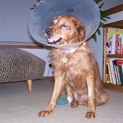 Bailey is to keep as quiet and calm as possible for six weeks during her recovery from the heartworm treatment. As for her toe, it is wrapped and stitched, and the wrapping needs to be kept DRY (and it is supposed to snow soon?), so the vet made her a rubber bootie out of an IV bag (very McGyver, I must say). Her eye--well, there are stitches in there somewhere but I haven't looked too closely. I get the creepies just thinking about stitches in there!