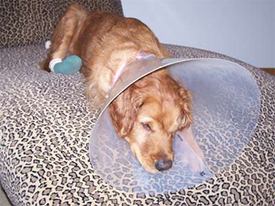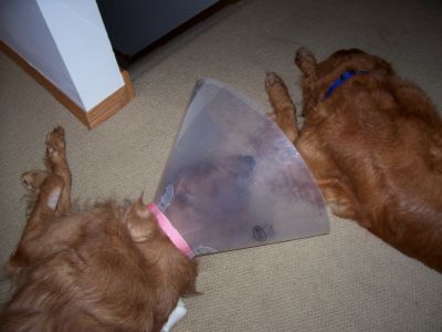 Bailey’s home!!! I took a short pharmacists’ course at the vet's office, but we've got everything under control and Bailey is doing GREAT! She was the first of three dogs to finish her dinner, took all of her medicine (hidden in cheese, of course), let me administer her eye ointment and two ear medications, pottied outside just fine, and is starting to figure out how to maneuver the house with her Cone Head. Of course, on the looong trip home from the vet, we had to share a celebratory Filet-o-Fish sandwich in the car, which Bailey enjoyed VERY much!