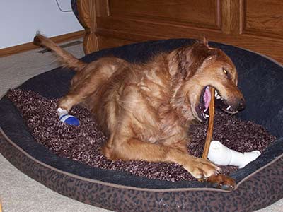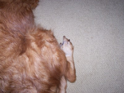 Bailey continues loving her new life as a RAGOM dog. She is very contentedly laying on the floor next to me, chewing on a Bully Stick (her favorite after-dinner activity!). I've noticed that most of my updates have been about Bailey's health, so I am on purpose NOT going to say anything about that. OK, just one thing - I've included a closeup photo of her foot with the missing toe, just to show that it's not too gross of a thing.