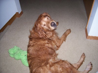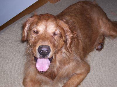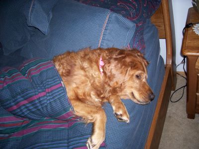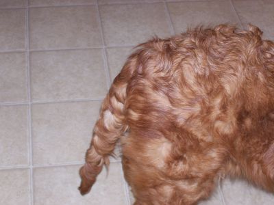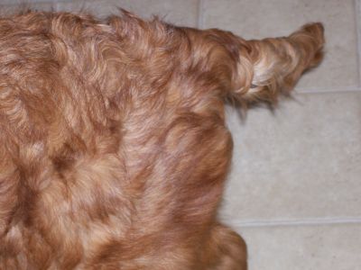 Bailey is laughing at me right now - trying to take a picture of a dog's wagging tail has been a challenge this evening! But, I feel motivated to do so, as I received word that a donation came into RAGOM in Bailey's honor, hoping that someday she would grow feathering on her tail. Isn't that just wonderful?!? It is such a shame that Bailey's health deteriorated to the point it did, and that most of her health issues could have been avoided with very inexpensive, preventative care. Hopefully, Bailey's fur coat will fully recover now that she's stabilized and she will someday have a proud, feathered Golden Retriever tail. Right now, her fur is growing in thick and curly which is really, really cute (and doesn't shed much at all!). Time for bed; we're exhausted! :)