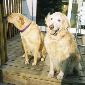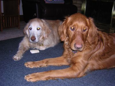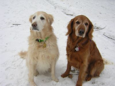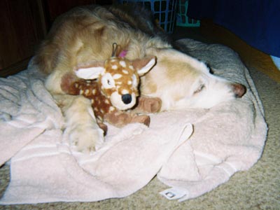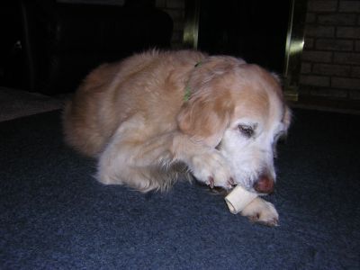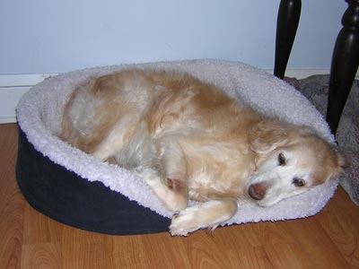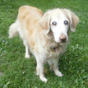 Bailey/Bails 4/19/98--9/22/11 It's my sad duty to report that Bailey VIII has gone to the Rainbow Bridge at the ripe old age of 13 and a half. Bails came into Ragom in the winter of 2008 shortly before her tenth birthday. Bail's was adopted on April 22, 2008. Bailey had a kind and gentle soul and still enjoyed attending Ragom events up to the summer of 2010 as a goodwill ambassador for Ragom. I recall one event in particular in January of 2010. It was shortly after the loss of her furbut sister Bailey 7. One of the families who stopped to give her a pet was a father and son. The son and Bailey made an instant connection. He would stop petting her and her paw would reach out to touch him. And he would resume petting her. After several attempts by the father to say "let's go kiddo" fell on deaf ears he just stood and watched. In fact after a while I looked around and all who were there were watching those two... That was my Bailey. The two Bailey's had a few issues the first few months together. Bail's would do rude stuff being blind like crowd other dogs or stare. The two Baileys became wonderful pals. I recall the last night Bailey 7 spent here with us she was very ill and Bailey VIII knew it, she was very close up by her sister all night. She was very sad to lose her sister. The number references you see, when talking about two dogs both named Bailey you had to have a way of letting people know "what" Bailey you were talking about. Bailey 7 Ragom # 07-687/Bailey 8 #08-124. I also would call 7 Bailey and 8 Bail's or even B-8. She would make me smile by answering to B-8. We had that line up along with lil furbut sister Zoey for just short of two years. On came a new pooch "Charlie" a month after our loss of Bailey 7. He was Bailey's new lil brother. While he was Zoey's play pal, he was Bail's cuddle pal. Bailey was a great senior to the foster dogs passing through too. A few I recall Luke 08-248, Bailey was his first best friend. Luke was so shy and afraid he was Bailey's shadow for a while. Peaches 10-148 and Bail's were walking buddies in the summer of 2010. And our last foster Duke 11-248. Duke came in on a Friday night with a bit of a wood tick collection. So Duke's first night he was placed in the dog crate in the kitchen for the night and he wanted no part of being alone in a new strange place! Bailey to the rescue we relocated her dog bed to kitchen and she plunked right down and went to sleep. Duke took the cue from her and we all got some much needed sleep. And Bailey came out without any wood ticks. As the year 2011 came on us Baileys health started to fail her. I was so happy to have her thirteenth birthday last April along with her three years adopted day. She rebounded a bit this last summer but on September 22 it was time to say good by. Her gentle soul is missed so much. But she and her sister Bailey are now together again. My Bee Girls are at the Rainbow bridge. Their ashes are side by side in the corner of our yard.
