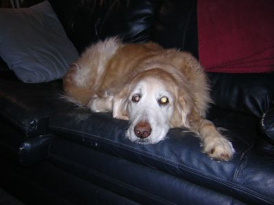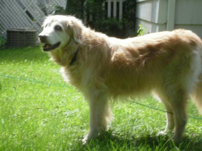 Bailey, Bail's, Sweety, B-8 is doing well. She just celebrated her eleventh birthday back in April. Bailey's eyesight has been failing the last few years and she is about 90% blind. Not to worry, it does not slow her down much. She will bump into the other dogs once in a while, but they get used to it. It has not affected her sweet and kind nature one bit as she is a happy girl. She has adjusted to the lack of sight very well and walks wonderful even without a Gentle Leader.