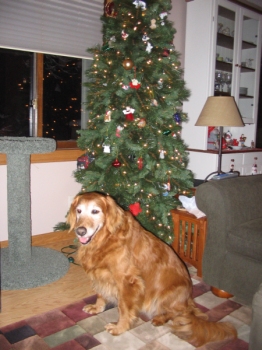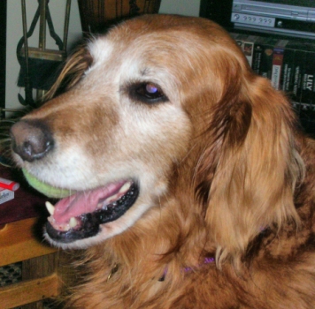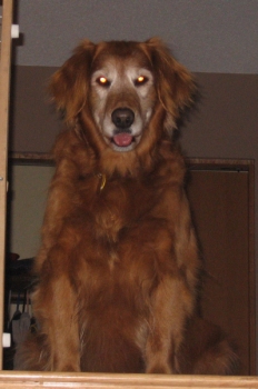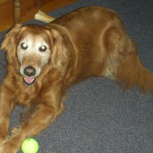 Red is an incredible dog! If someone is looking for a calm, house trained, low maintenance companion...she is it! She rides great in the car, very easy to walk on leash, knows sit & comes when called. No issues, can you believe that? Forgive me if I have typos here, as she likes to sit at the computer with me & nudge my arm...loves attention! She loves to be brushed. She has a slight ear infection & couldn't care less about you messing with her ears. She has destroyed almost every toy in the toy box with a squeaker...so she seems to be a true G.R. Red also loves the snow, you should see her! She's not really into playing with the 2 year old resident dog, cause she's kind of out of that stage of her life, but they do get along & she only starts barking if he is! The cat has accepted her in a very short time, which is surprising. Maybe because she's so cool, no threat. Red will be available shortly for her forever home. We are waiting for vet records so that she is up to date. What a great Christmas present she would make, unless we decide to keep her!