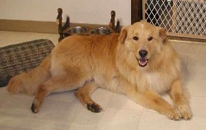 Our Barkley had 13 1/2 years on this side of the Rainbow Bridge and we were lucky enough to spend almost 10 of those years with him. Gentle, dignified "Sir Barkley" (one of his many nicknames) was dubbed "one of the sweetest dogs ever" by many family friends, well, by us too. He loved to socialize with people and could always 'work the paw' to keep the interaction going. He earned his Canine Good Citizen certificate and did some Therapy dog training but was happiest being a family dog. He so enjoyed his yard, luxuriated in rolling in grass or snow, or resting in a cool spot of dirt, and kept busy maintaining a squirrel-free yard! He grew to enjoy cuddling with Brie, the long haired Chihuahua who joined our family last summer. Over the last several weeks the weakness in his legs was significantly worsening and discomfort increasing from disc problems, so we sadly said goodbye here at home on April 2. We're missing you, Barkley!