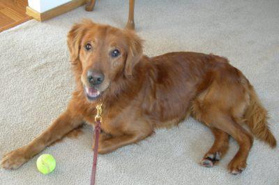 Barley is a PB GR and a very handsome fellow. Barley turned seven years old on December 10, 2009. He has a dark red coat and the most beautiful face. He truly could be a "poster boy" for what a GR should look like. I have only been able to get one good picture of Barley, because he is camera shy and tries to hide.