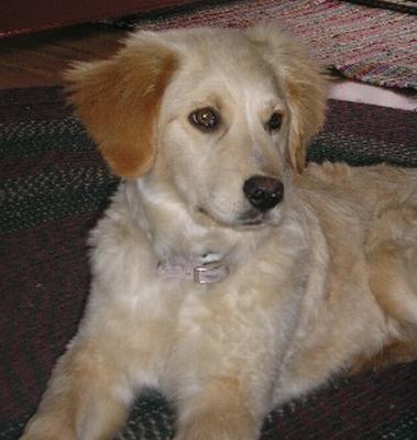 Barney came from a shelter in Iowa so we don?t have any background information on him. I would say from his reactions that he probably has not been a house dog in the past and is quickly acclimating to all the things a house has. The refrigerator is a real hit with Barney ? he gets so excited when you open it and he can look at all the food inside! The planes going overhead in the backyard are not his favorite thing so far, but he?s slowly adjusting to those. Barney loves toys ? and shoes. We haven?t given him a chance to find out if he would just carry them or chew them though! He also loves marrow bones and will lay quite content and chew away.