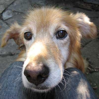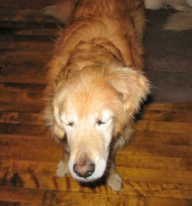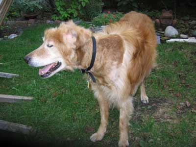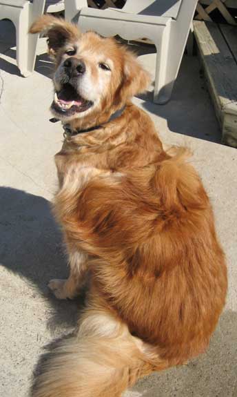 I can't continue to foster him as he is so feisty and stubborn that he is giving my 15yo cat a hard time. This is not a good thing. He can't climb many stairs - he struggles with the four steps to get into the house. He's currently small enough that I can try to help him up the stairs - he weighs about 35lbs. Also, he should be somewhat confined as he isn't housebroken. He must have been an outdoor dog in his previous life. His red coat is lush and covers up his skinny frame which we are trying to fatten up. Bear needs a place to hang his hat while he recuperates.