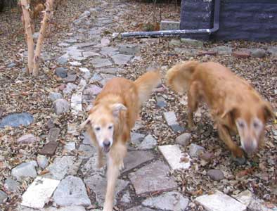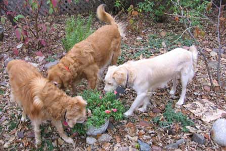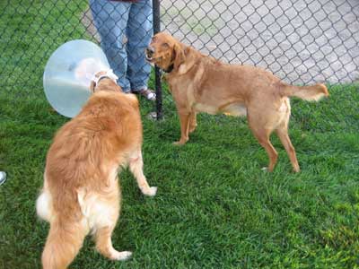 Here are recent photos showing Bear with fellow playmates. The hair on his neck is growing in nicely - just enough to keep his neck warm in the cold.