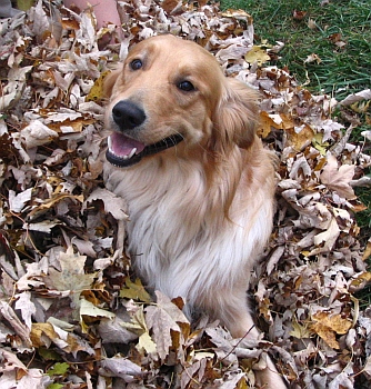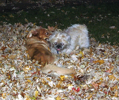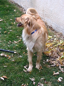 Neutering is officially no longer slowing this busy boy down. This morning we were trying to multi-task with some play and work in our yard -- but Tanner is pretty sure that all leaves are better if they are raked at least twice. He had a grand old time tossing his tennis ball around in our neatly raked leaves. He actually does a great job in general of entertaining himself with his toys. We also had a friend's dog over for a little doggy play date - he had a blast playing with the visiting dog.