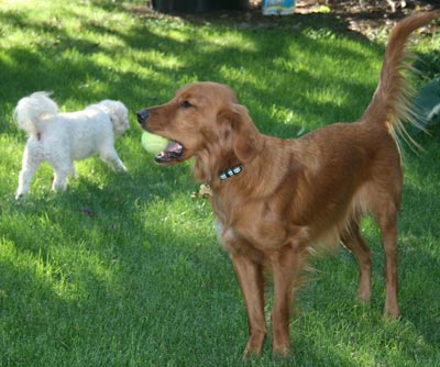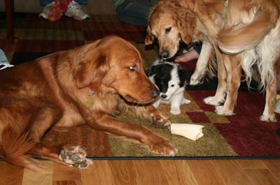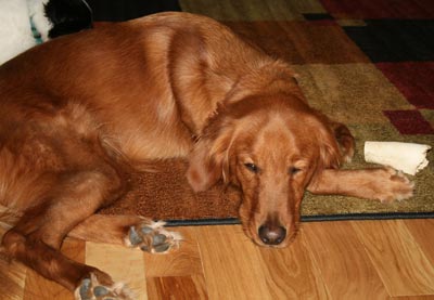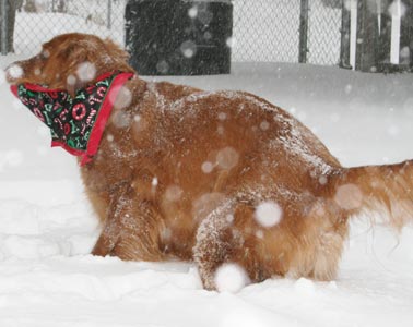 Bo loves the snow and spends a lot of time in the back yard running around and making 'Bo-Angels" in the fresh snow. He is getting much better with his barking to get his way, we use a 20 oz. pop bottle with some pennies and bottle caps in it as a shaker, and shake it when he starts barking. The noise distracts him enough that he forgets what he was barking about. As evenings have become much darker and colder Bo is not getting daily walks but more like every third day or so, he makes up for this decrease in activity with his wrestling matches with his best friend Lacey and running like a wild man in the yard.