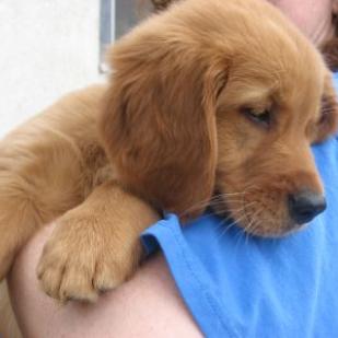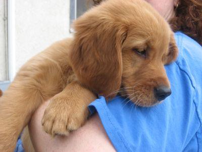 3/26/07: Brady (born January 12, 2007) is a purebred from Iowa that made the four hour car ride to the Twin Cities on Saturday with his brother Bailey. The brothers are now fostered together in St. Paul.  Brady was neutered last week and will get his stitches out in a few days. He is up-to-date on all his shots.  Brady is a very playful, yet quiet pup (we haven’t heard him bark). He is learning to sit and come and is trying to understand that the bathroom is outside. Did you see Brady on TV? Brady was the star of the 6 o’clock news on channel 5 on Saturday when he was held by the reporter during a segment for RAGOM. Brady is a special boy. If you believe Brady would make a great addition to your family, please contact placement.
