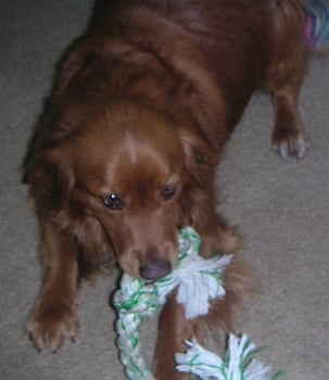 There is nothing negative I can say about this girl....unless you count the fact that she can jump straight up about 3 feet off the floor and is constanly giving kisses. I will miss so many things about this sweet girl I don't know how to begin.....because to tell you is to help me say goodbye to Brandy. Brandy loves to wrestle, play tug, or run in circles with a toy in her mouth, making her growly play voice and expecting that whatever dog is present is expected to chase her. No dog up to the job?....well ok, humans will do. I loved those little legs pumping and propelling her across the yard or field either chasing a ball or just running for the sheer joy of being able to do it. I will miss cuddling with her on the couch, her presence on the bed at night, the morning kisses and belly rubs (her's, not mine), her tail wagging constantly, swishing across the floor, how she would go into the bathroom and pout when she knew I was leaving for work, how she was always at the door to greet me.....all 4 feet off the floor trying to kiss me at the same time :) Those eyes melted my heart each time I looked into them and her steady gaze. You may wonder how I can get attached to a dog so readily....it isn't hard when they are this special....her only demands were for love and play. To be very honest, if she had not gone to her Forever Home today, I would have adopted her. While I have enjoyed and cared for all my fosters, this was a very very special girl. Her Forever Family is awesome, her human 2 year old sister is great with her, and best of all she will be living in the country on 5 acres......her favorite place to be.