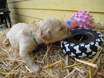 All the puppies went home today because they got Coccidia last week and really the only way to get rid of this nasty worm is to keep the area very clean and make sure the puppies do not lick each other, step on the poop and other things that are really hard to control with 9 very active puppies. So the vet suggested we let the puppies go home since they are all HUGE and doing very well.