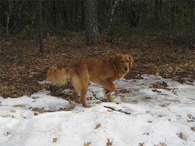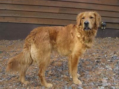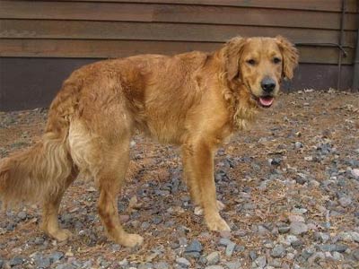 He is a 60 lb. intact male (soon to be remedied), red in color, shorter curly hair on his back, medium feathering on his legs and butt. He is in excellent shape both physically and mentally.