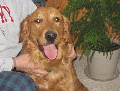 I will be with him 24/7 until he is adopted to his forever family. He gets along well with our resident dogs. There was and still is some posturing from our male Golden, but nothing Briar hasn't handled. He has been walking twice a day with our dogs and gets along fine both on and off the leash. He has been down to the lake and loves the water. Sleeps well at night and has the run of the house. I found him in bed with me this a.m. Other than that he has his own pad (when he can get to it). Right now he is out on the deck taking an evening siesta. He eats like a gentleman, but drinks like a male Golden (water all over the floor). He also likes to hide his favorite toys in the water bucket (likes bobbing for them, I guess).