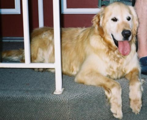 I picked him up yesterday (June 18th) on his 9th day at the shelter, as well as his date for euthanasia. The shelter is overfull, many kennels housing multiple dogs - which is against policy. Brodie was dirty, full of mats and ticks and I guess they figured, who would want to adopt this guy? But oh, what a difference a day makes. He is as beautiful inside as he is outside. Loves our resident 3 Goldens and visiting Chocolate Lab and is very polite and tolerant of our other foster boy - Rowan 05-153, the exuberant 14 month old.