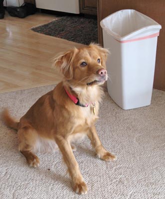 This morning Tyson and FD went for an errand, so Brody and I worked on some training (sit, stay, leave it). He did pretty well. He hasn’t been motivated to release his ball for treats yet, but today he would take a treat when he left the ball. He just loves his balls and doesn’t react to anything else when he has his balls – he chewed through 2 tennis balls yesterday. So, as much as he loves his tennis balls, I am working with him to leave it and play catch. He leaves the garbage can alone and has shown no interest in anything besides his tennis balls.