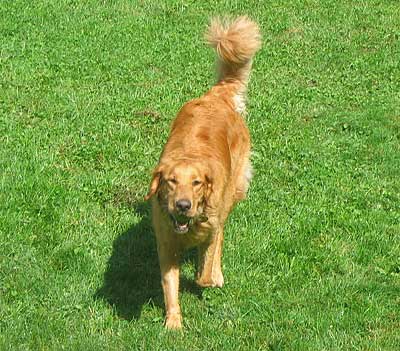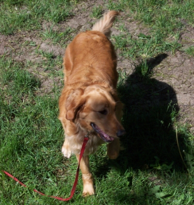 What every prospective family must know about Miss Brook is her athleticism and her love of running. She is a greyhound in a Golden body, and she can outrun a gazelle. We try to give a 4-mile run every day, but she needs to be on leash and neither of us can run 10 miles an hour anymore. What a pity. When she is free in our fenced-in yard, she literally flies around. She has an all-out gallop that is second to none. Because of her speed and love of running, I have been whistle-training her in case she ever gets loose. One blow on the whistle, and if she comes immediately she gets a jock-pot treat. So far, so good. Only once did she hesitate before coming to me immediately.