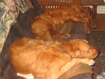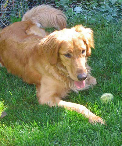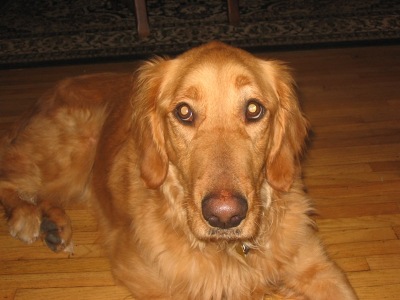 Last summer we had her over for a week while her foster was on vacation, and since that time we noticed a change in her. Her nervous energy is dramatically reduced from the levels we recall. As I write this, she is sleeping or resting next to the chair at 8:30 PM. She is showing her true Golden colors; she loves to be around people and readily shows her affection.