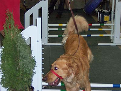 I did find the agility obstacles after having that dreaded bath so that made up for some of it. I got to go through the tire jump again, I jumped a standard jump with the pole almost as high as it could go (one notch below the top) and flew over that, and mom is so proud of me – I went through the tunnel. OK. it was a very short tunnel and I could see and hear my mom at the other end, but I still did it. I got lots of hugs and gave lots of high fives for doing that.