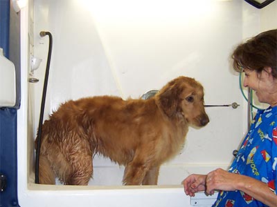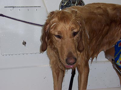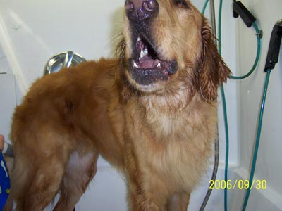 I know, you just heard from me last night. Well, mom and I went to the Doggie Palooza today and I had to share my exploits there. I got lots of treats and toys. And get this – I got a BATH! If I had known that was in the works I would have never consented to going. And mom even got pictures! Jeepers.