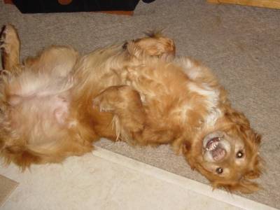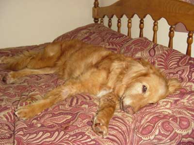 This is Brooklyn and I am back!! Boy I had a couple bad days after my last treatment but I am feeling much better. The picture of me on my back was the night I got home.....I tried everything to get comfortable. Even my back and I have NEVER done that before. Mom and dad were so worried about me!!! It worked out good because they didn't make me go in my kennel that night. The put a gate across the spare bedroom door and let me sleep in there with a REAL bed and even a computer. Don't tell them but I did a little web surfing after they fell asleep!!! Wish I would have had their credit card number because I saw some sweeeeeeeeeeeeet stuff on line!!! And I haven't had to go in my kennel since then because I was such a good girl. Oh, I got sick one night but they weren't mad and I have gotten to sleep in that room every night.