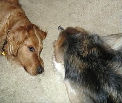 Oh yeah, Moose has one other little thing. Not a big deal. Just thought I'd mention it in passing. You know, just in case. Probably not important, but if he stands up and puts his front paws on your shoulders and seems to be getting really "friendly," you'll probably want to tell him to get down. I don't think the neutering totally "took" yet, if you know what I mean? Probably just a phase he's going through. You know how guys are in the Spring.