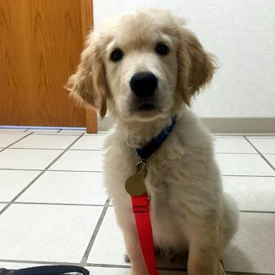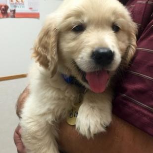 Our sweet Bruno came to RAGOM with his brother, Gus, and several other Goldens from the MO auction. He is a gorgeous light colored boy and has a wonderful personality. Our youngest Golden, 1 year old Sully, loves to play with Bruno and Gus and it makes for lots of tired dogs! Bruno has been adopted and has moved to Minnesota! He is one lucky boy - living on a lake in MN and having a pool in the winter in Arizona! We have gotten updates from his awesome new family saying that he's doing great and growing like a weed! He is now known as Bjorn. Congratulations!