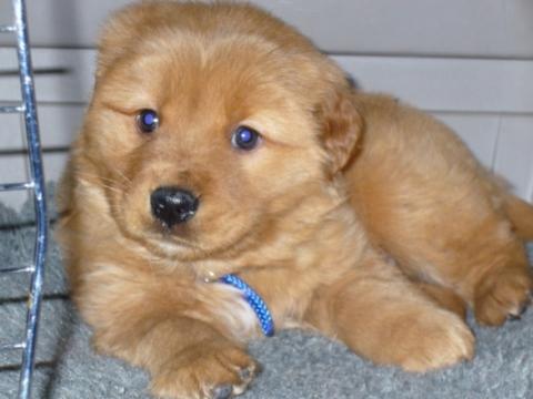 1/15/06: I'm Bubba's foster Mom, and so lucky to have this sweet, quiet little guy. He still has his cold, but his cough is getting better. He is starting to feel better, so he is running around and playing like the other puppies. He usually sleeps through the night and is doing great with his potty training. He is starting to bark if he has to go outside. He loves playing in the snow and chasing the leaves blowing across the yard. Bubba is very much a cuddler, he loves to be held and snuggle next to my two other Goldens. Like Newton, he is small and should gain some weight. Now that he is feeling better, he is starting to eat all his puppy food. I will let you know how he is doing next week.