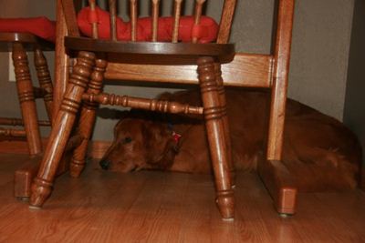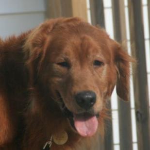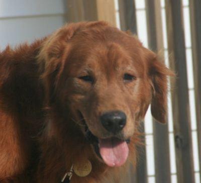 Meet the new, very scared boy, Buckshot. We call him Bucky. He is a retired stud dog from a commercial breeder. Buck is a red Golden with a gorgeous coat. He is 6 years old and weighs 66 pounds. We went to the vet yesterday as he has a raging ear infection. So bad pus was pooling inside and the ear tissue was swollen, open and bleeding. The kind vet shaved off the mats, cleaned it out and put him on multiple antibiotics, pain meds and Prednisone to try and rapidly improve things. He will return to the vet next week to be checked and to get scheduled for his neuter.
