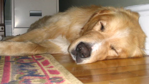 Buddy lets me treat him like a big teddy bear. He likes to nuzzle his head into my lap and then I wrap my arms and legs around him to give him a big hug. He seems to enjoy this, since he has been waking me up in the morning so he can get his hug. Here is Buddy being mellow and sweet in my office, of course he is not helping me get my work done, but as they say, there are no perfect dogs :)