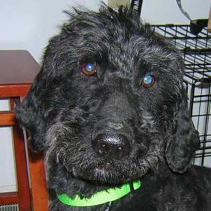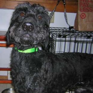 Buddy arrived early Saturday evening after a long day of transport. He is a two-year-old neutered black Golden Doodle. He is so skinny. He came from a neglect situation so he was shaved short to get rid of mats. He met my dogs easily. After surveying the yard he went to the back door as if he's lived here his entire life. He quickly met the cat...no issues there. He checked out the main floor of the house and found the toy box. Because we were told he was an outside dog, I have had him tethered to me unless he's been crated. He has shown no desire to potty in the house and he is beginning to earn more freedom. Last night he slept in a crate and after a couple initial yelps of revolt, he settled right down and slept all night.