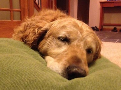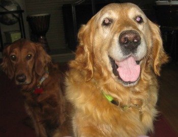 When she came over, she looked at my big brown eyes (see picture below for how good I am at giving puppy-dog eyes!), I batted my long blonde eyelashes, and looked longingly back at her and I just turned to mush! It was love at first sight! I think my new mom kinda liked me too because she said she wanted to take me home right then and there! Foster Mom was happy too, but she said I could't go home just yet because I had to have a little surgery first - she said I had to get "neutered" first because it's the cool thing to do these days. My new mom came back for me a couple days later though, just like she promised, and I got to go home with her in her big van with cushy dog beds in it instead of the normal people seats! And I have a new fur sister, Abby, who also came from RAGOM, so she understands where I'm coming from and can show me around. I'm sure I will fall in love with her too and we will be best buds!
