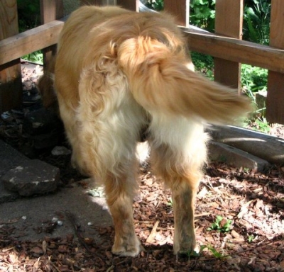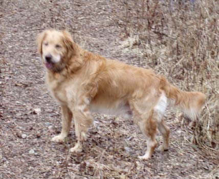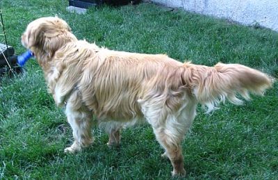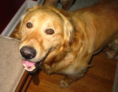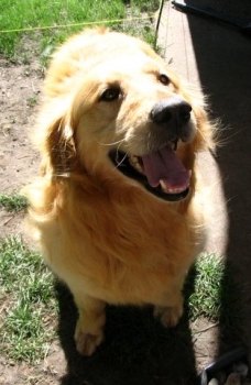 It was with many tears that our Buddy (Bo 06-259) crossed over to the rainbow bridge yesterday. Kelly, Buddy's foster mother thought that Buddy would be perfect for us as we had asked for a mellow dog. She was so right! When she took him in to be neutered, a mast cell tumor was discovered on his neck. Because of that I think many people were hesitant to take him on, but we thought we would love him for whatever time he had left. Not long after we got him, we discovered that he was in need of daily thyroid tablets but we knew that was common in Goldens and it wasn't a big deal. But in the fall of 2008 he was diagnosed with chronic leukemia. Despite his illness, he carried on and enjoyed the good life, surveying the yard as I gardened, meeting the mailman at the mailbox to get treats, taking long walks every day, and being the most mellow dog in the world (we even had someone break into our house one night while we were asleep and Buddy never barked…) He was never far from our sides, and the neighbors and all who met him, loved him despite some of the worst breath in the world. Two months ago he took a turn for the worse. We started prednizone as a means to stimulate his appetite. It helped, but in the end his system was not absorping nutrients and he was not getting the oxygen he needed. As much as he wanted to be with us and as much as we wanted him with us, he was tired and ready to go. I know everyone thinks that their dog is special but Buddy really was. As I have told neighbors about his passing they have all commented on what a wonderful dog he was. When I called the kennel where he tended to stay when we were gone, the care-givers cried on the phone and told me that he was one of their favorites. He was the calmest dog that ever lived…we only heard him bark 12 times in the almost five years that we had him. People tell me that Buddy was lucky because he came to live with us. My son says that he won the dog-lottery when we picked him up in Minnesota. But the truth is that we got so much more from Buddy than we ever gave him. We know he is in a better place now. A place where he has the energy to run and play, an appetite, and no pain. But I listen for his sigh as he would settle down and for the sound of his snoring as he would go to sleep; I look around for his body sprawled on the floor and for his tail wagging in the wind, and I long for his silky fur and stinky breath. Yes, he's in a better place but oh, how we miss him so! Julie and Allen B.